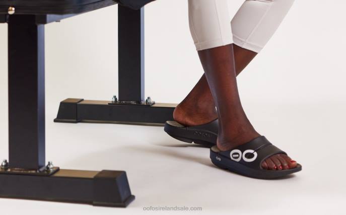 Black White OOFOS Women’s OOahh Sport Slide Sandal 404R1