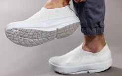 White Checker OOFOS Men’s OOmg eeZee Low Shoe 404R155